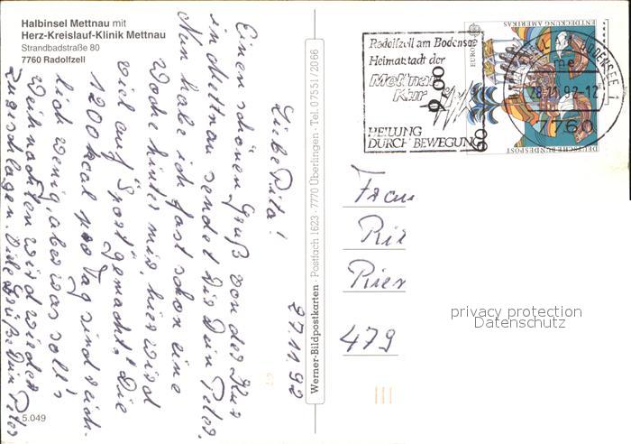 72586604 alte Postkarte Radolfzell Bodensee Halbinsel Mettnau Herz-Kreislauf-Klinik postalisch gelaufen Erhaltung siehe scans [AntonD74] KatCode: 11110008335063