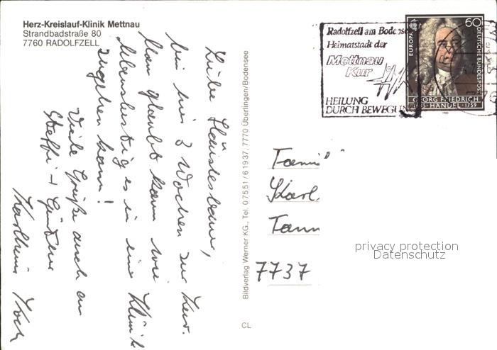72585107 alte Postkarte Radolfzell Bodensee Herz Kreislauf Klinik Mettnau postalisch gelaufen Erhaltung siehe scans [AntonD74] KatCode: 11110008335063