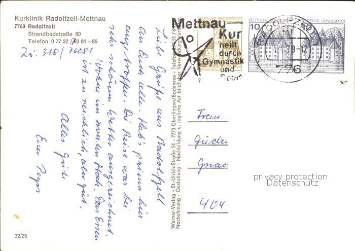 71847822 alte Postkarte Radolfzell Bodensee Kurklinik Mettnau postalisch gelaufen Erhaltung siehe scans KatCode: 11110008335063