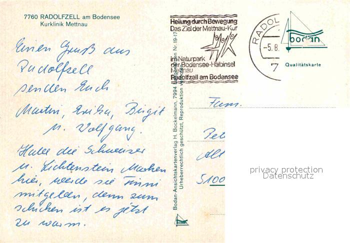 72828300 alte Postkarte Radolfzell Bodensee Kurklinik Mettnau Kurpark Skulptur postalisch gelaufen Erhaltung siehe scans [FriedD77] KatCode: 11110008335063