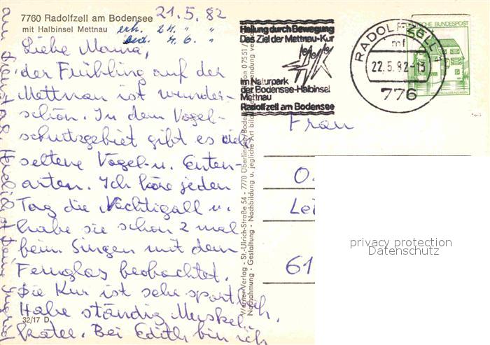 72786192 alte Postkarte Radolfzell Bodensee mit Halbinsel Mettnau Fliegeraufnahme postalisch gelaufen Erhaltung siehe scans [FriedD77] KatCode: 11110008335063