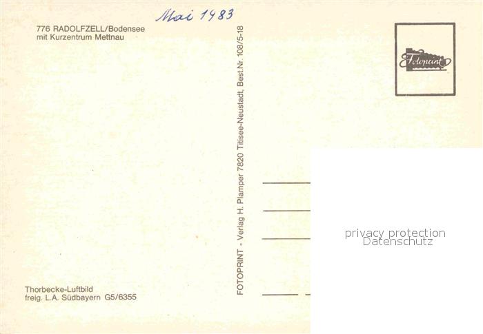 72786193 Radolfzell Bodensee mit Kurzentrum Mettnau Halbinsel Fliegeraufnahme postalisch nicht gelaufen Erhaltung siehe scans [FriedD77] KatCode: 11110008335063