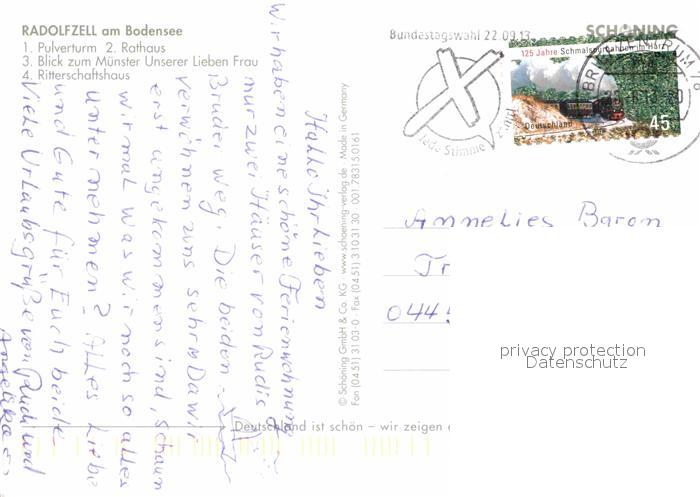 72756084 alte Postkarte Radolfzell Bodensee Pulverturm Rathaus Muenster Unserer Lieben Frau postalisch gelaufen Erhaltung siehe scans [NatalD47] KatCode: 11110008335063