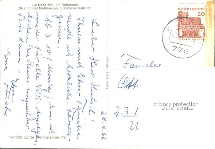 72007382 alte Postkarte Radolfzell Bodensee Strandhotel Mettnau und Scheffelschloesschen postalisch gelaufen Erhaltung siehe scans KatCode: 11110008335063