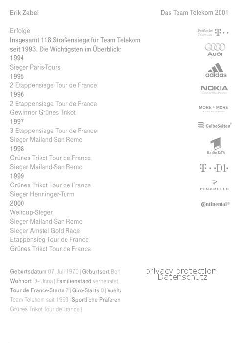 Radsport Radrennfahrer Erik Zabel Autogramm postalisch nicht gelaufen Keine Postkarte (siehe scan) Erhaltung siehe scans [PaolaD17]