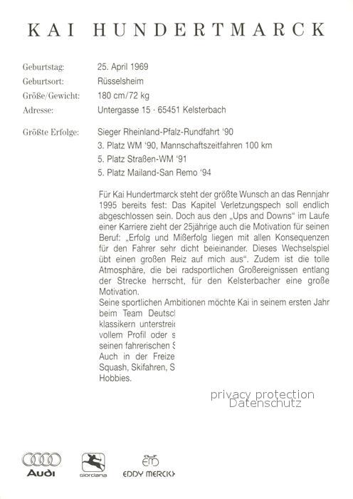 73145417 Radsport Radrennfahrer Kai Hundertmarck Autogramm Telekom KatCode 22520000004400