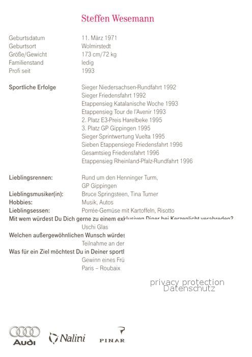 Radsport Radrennfahrer Steffen Wesemann Autogramm Telekom postalisch nicht gelaufen Keine Postkarte (siehe scan) Erhaltung siehe scans [PaolaD17]