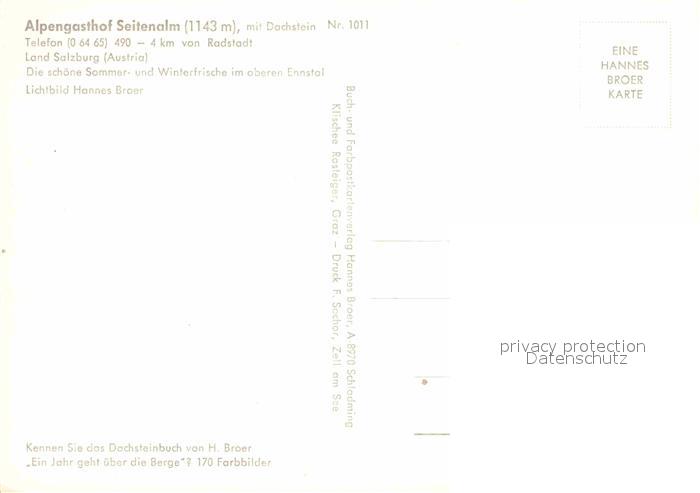 72849442 Radstadt Alpengasthof Seitenalm postalisch nicht gelaufen Erhaltung siehe scans [KathaD81] KatCode: 11390322050417