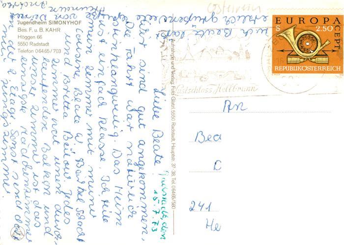 73923578 alte Postkarte Radstadt AT Jugendheim Simonyhof postalisch gelaufen Erhaltung siehe scans [FriedD77] KatCode: 11390322050417
