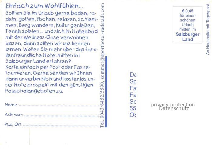 74100690 Radstadt AT Sporthotel Freibad postalisch nicht gelaufen Erhaltung siehe scans [FriedD77] KatCode: 11390322050417