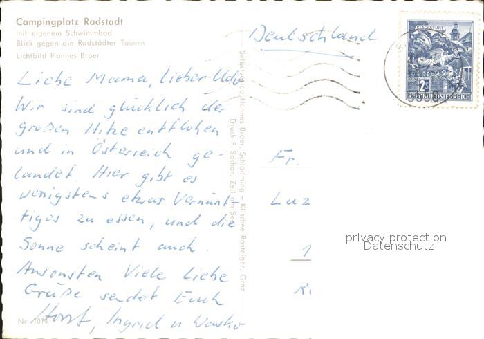 71934720 alte Postkarte Radstadt Campingplatz Radstaedter Tauern postalisch gelaufen KatCode: 11390322050417