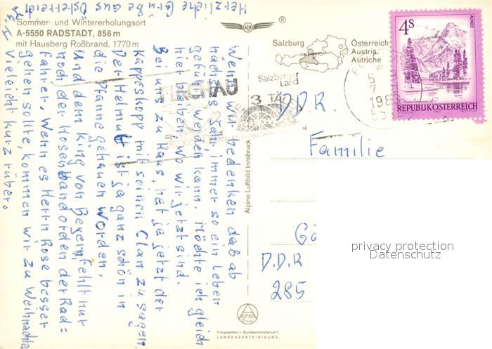 73587158 alte Postkarte Radstadt Fliegeraufnahme mit Hausberg Rossbrand postalisch gelaufen Erhaltung siehe scans [WerneD78] KatCode: 11390322050417