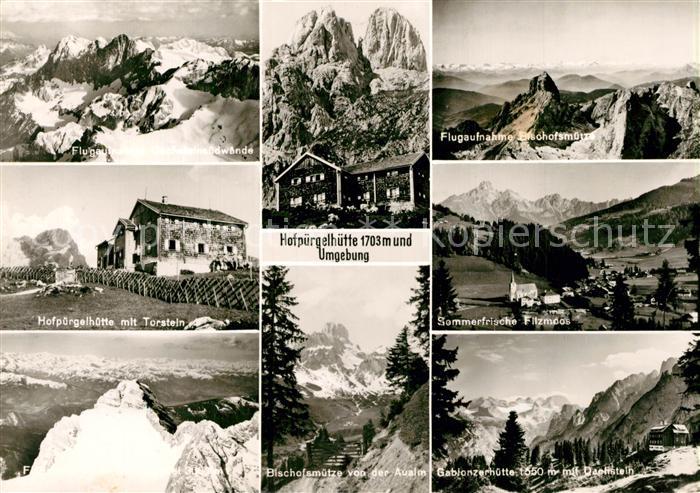 73360213 alte Postkarte Radstadt Fliegeraufnahme Suedwaende und Bischofsmuetze Hofpuergelhuette mit Torstein Filzmoos Gablonzerhuette postalisch gelaufen Erhaltung siehe scans [WerneD78] KatCode: 11390322050417