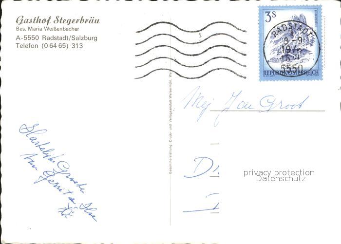 72458961 alte Postkarte Radstadt Gasthof Stegerbraeu postalisch gelaufen Erhaltung siehe scans KatCode: 11390322050417