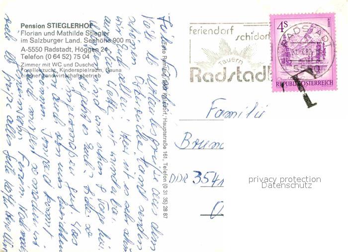 72665130 alte Postkarte Radstadt Pension Stieglerhof Gaststube postalisch gelaufen Erhaltung siehe scans [WerneD78] KatCode: 11390322050417