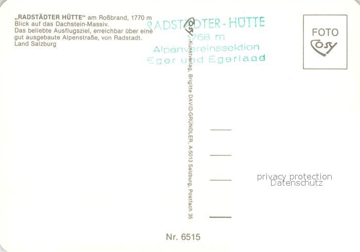 73577818 Radstadt Radstaedter Huette am Rossbrand Panorama Dachsteinmassiv Alpen postalisch nicht gelaufen Erhaltung siehe scans [FriedD77] KatCode: 11390322050417