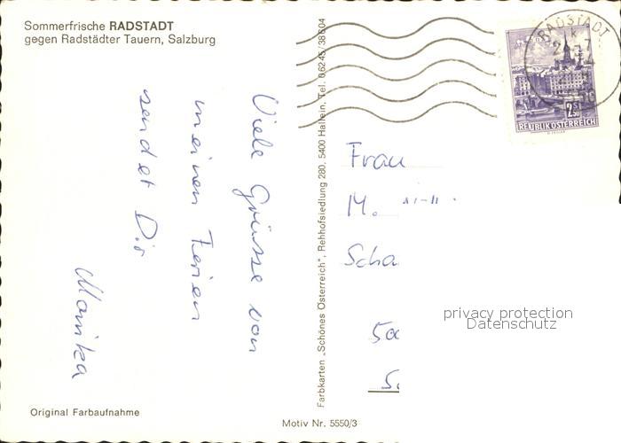 71994648 alte Postkarte Radstadt Radstaedter Tauern postalisch gelaufen Erhaltung siehe scans KatCode: 11390322050417