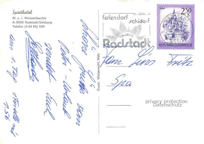 74137598 alte Postkarte Radstadt Salzburg AT Sporthotel Weissenbacher postalisch gelaufen Erhaltung siehe scans [WerneD78] KatCode: 11390322050417