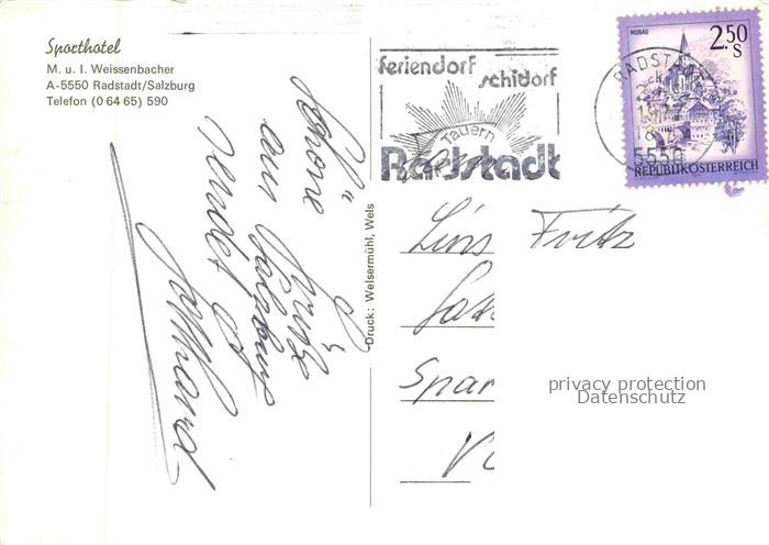 74137609 alte Postkarte Radstadt Salzburg AT Sporthotel postalisch gelaufen Erhaltung siehe scans [WerneD78] KatCode: 11390322050417