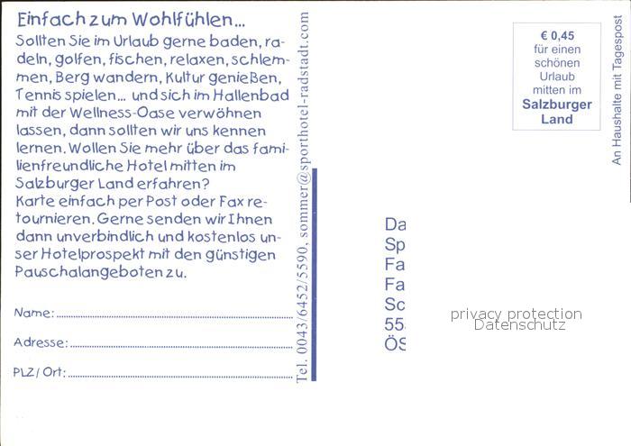 72108243 Radstadt Sporthotel postalisch nicht gelaufen Werbekarte (keine Postkarte) Erhaltung siehe scans KatCode: 11390322050417