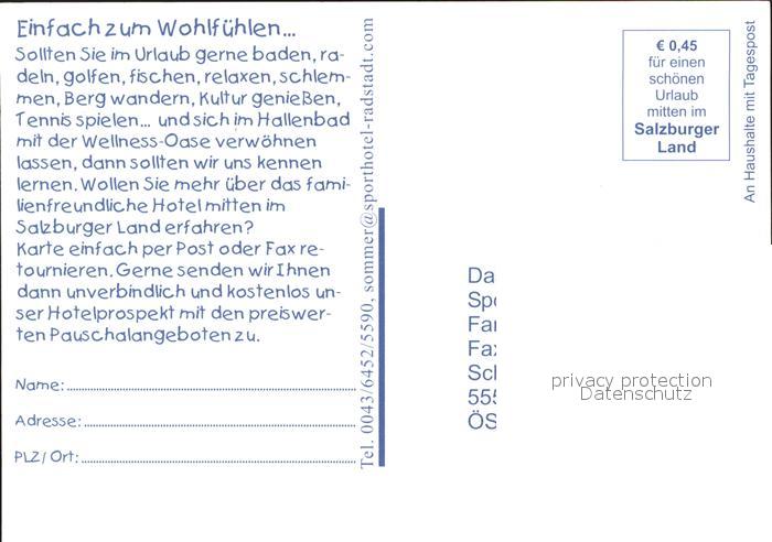 71901757 Radstadt Sporthotel postalisch nicht gelaufen Erhaltung siehe scans KatCode: 11390322050417