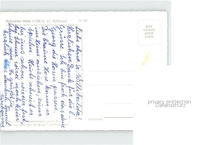 72081100 Radstaedter Huette am Rossbrand mit Torstein Mitterspitze und Hohem Dachstein postalisch nicht gelaufen Erhaltung siehe scans KatCode: 11390323050101