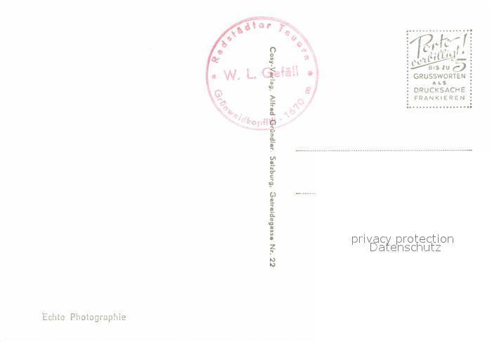 72877760 Radstaedter Tauern Gruenwaldkopf Gnadenfall Kehrbuehelkreuz Krummbachschnabel See postalisch nicht gelaufen Erhaltung siehe scans [AndreD76] KatCode: 11390323050101