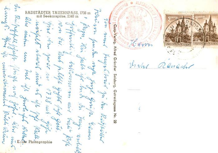alte Postkarte Radstaedter-Tauern Radstadt AT Tauernpass mit Seekarspitze Berghotels postalisch gelaufen Erhaltung siehe scans [FriedD77]