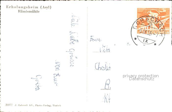 12007684 alte Postkarte Raemismuehle Erholungsheim Asyl postalisch gelaufen Erhaltung siehe scans KatCode: 11470260910542