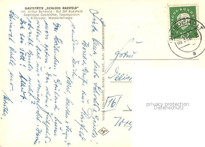73294032 alte Postkarte Raesfeld Schloss-Gaststaette postalisch gelaufen Erhaltung siehe scans [NatalD47] KatCode: 11110005554040