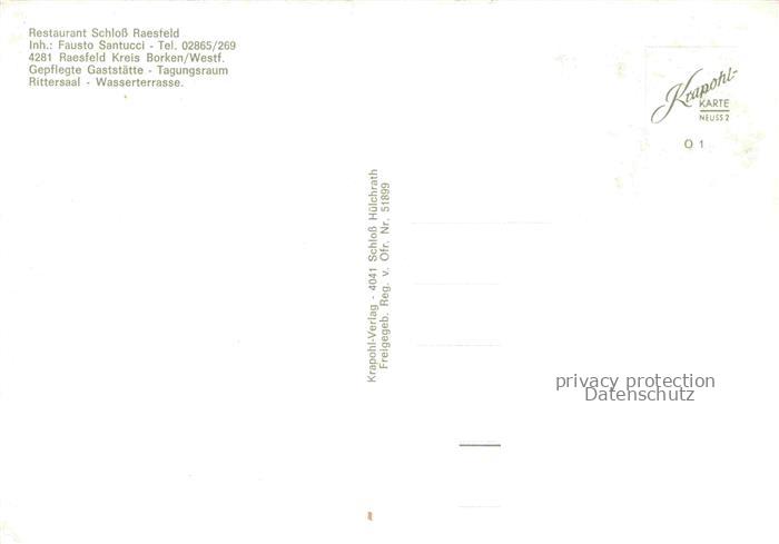 74157685 Raesfeld Schloss-Raesfeld Wasserschloss Schlossturm Burggraben Fliegeraufnahme Felder Restaurant Gaststaette postalisch nicht gelaufen Fliegeraufnahme Erhaltung siehe scans [Karloger] KatCode: 11110005554040