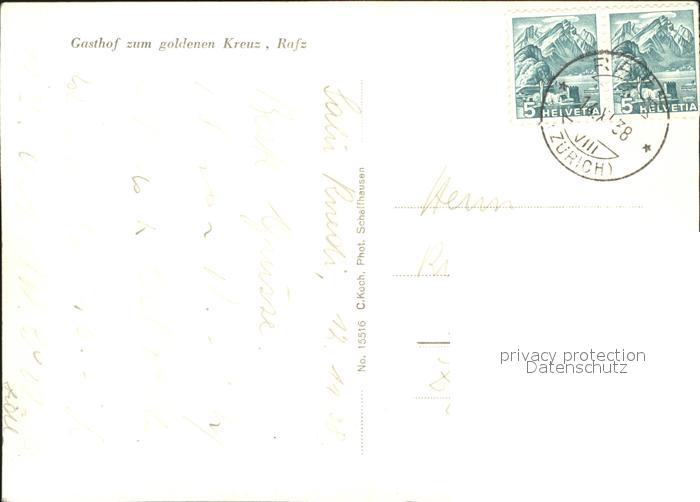 11641504 Rafz Gasthof zum Goldenen Kreuz Fachwerkhaus postalisch gelaufen Erhaltung siehe scans Alte Ansichtskarte Postkarte alte Postkarte hz_F Katcode 11470260870178