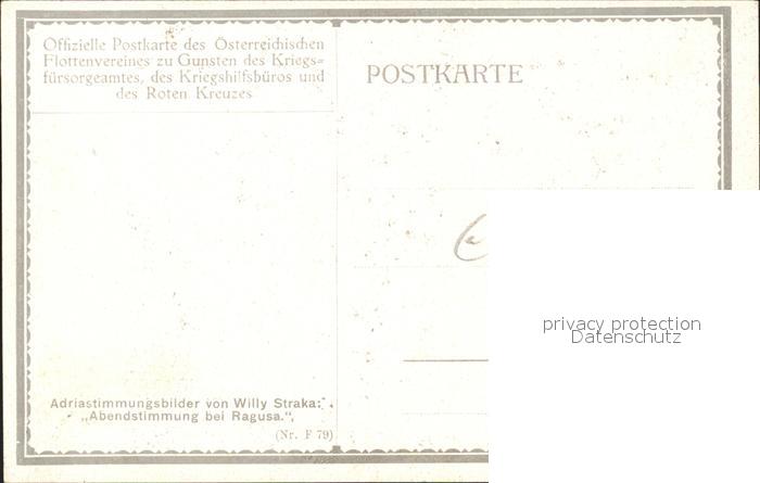 Ragusa Abendstimmung Offizielle Postkarte des oesterr. Flottenvereines Kuenstlerkarte Willy Straka postalisch nicht gelaufen Erhaltung siehe scans