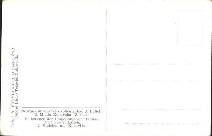 11378355 Ragusa Mlada Zorka Mädchen aus Konavlje Serie Volkstypen der Umgebung von Ragusa Künstlerkarte J. Lalich KatCode 11260