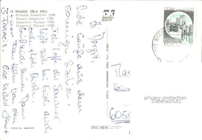 old postcard Ragusa Sizilien Palazzo Cosentini postalisch gelaufen Erhaltung siehe scans