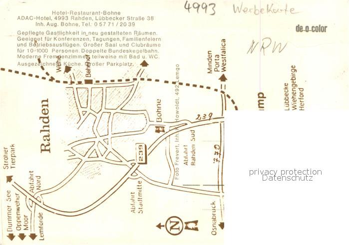 73695079 Rahden Westfalen Hotel Restaurant Bohne Gaststube Kaminzimmer postalisch nicht gelaufen Werbekarte (keine Postkarte) Erhaltung siehe scans [WerneD78] KatCode: 11110005770040