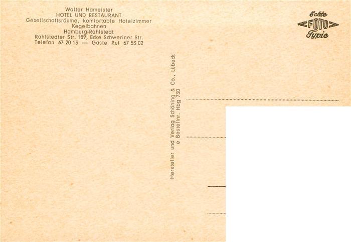73878580 Rahlstedt Hamburg Hotel Restaurant Hameister postalisch nicht gelaufen Erhaltung siehe scans [FriedD77] KatCode: 11110002000000
