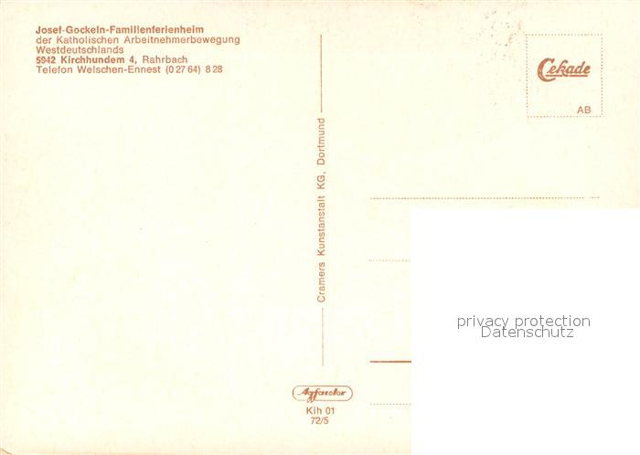 73721750 Rahrbach Josef Gockeln Familienferienheim der KAB Westdeutschlands Kindergarten Kinderzimmer Elternzimmer Speisesaal Jaegerstube Leseraum postalisch nicht gelaufen Erhaltung siehe scans [WerneD78] KatCode: 11110005966016