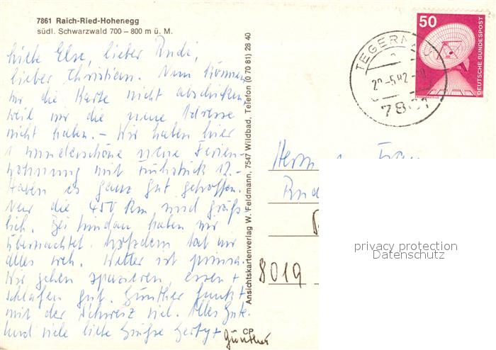 73256564 alte Postkarte Raich Ried und Hohenegg Schwarzwald Fliegeraufnahme postalisch gelaufen Erhaltung siehe scans [FriedD77] KatCode: 11110008336067