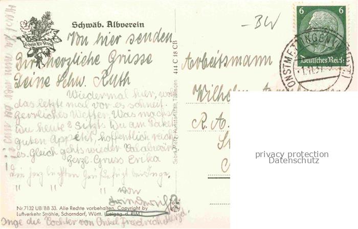 74095891 alte Postkarte Raichberg Onstmettingen Albstadt BW Wanderheim Naegelehaus Turm Zellerhorn Hohenzollern Hechingen postalisch gelaufen Fliegeraufnahme Erhaltung siehe scans [FriedD77] KatCode: 11110008417079