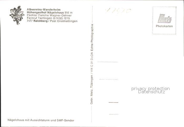 41767931 Raichberg Onstmettingen Albvereins-Wanderheim Naegelhaus postalisch nicht gelaufen Erhaltung siehe scans KatCode: 11110008417079