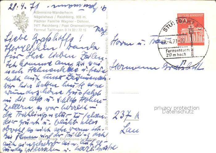 72053882 alte Postkarte Raichberg Onstmettingen Albvereinsheim Wanderheim Naegelehaus Aussichtsturm postalisch gelaufen Erhaltung siehe scans KatCode: 11110008417079