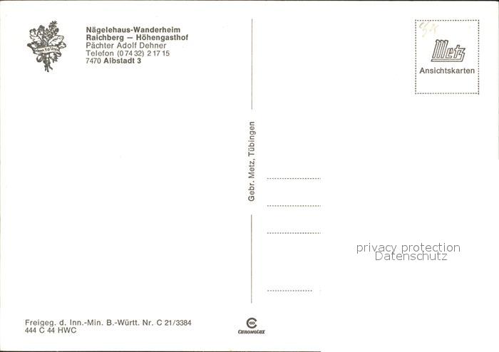 72097442 Raichberg Onstmettingen Hoehengasthof Naegelehaus Wanderheim Funkantenne postalisch nicht gelaufen Erhaltung siehe scans KatCode: 11110008417079