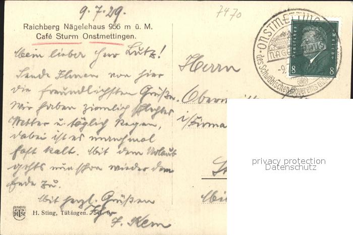 31722526 alte Postkarte Raichberg Onstmettingen Naegelehaus Cafe Sturm postalisch gelaufen Erhaltung siehe scans KatCode: 11110008417079