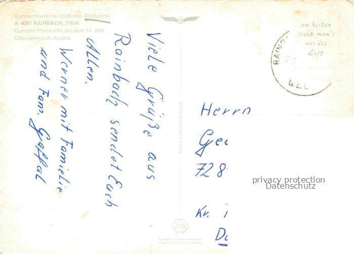 74096412 alte Postkarte Rainbach Muehlkreis Oberoesterreich AT Fliegeraufnahme Alpenflora postalisch gelaufen Erhaltung siehe scans [WerneD78] KatCode: 11390313040615