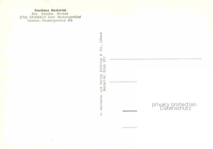 72777809 Rainbach Neckargemuend Gasthaus Neckartal postalisch nicht gelaufen Erhaltung siehe scans [LiesaD40] KatCode: 11110008226056
