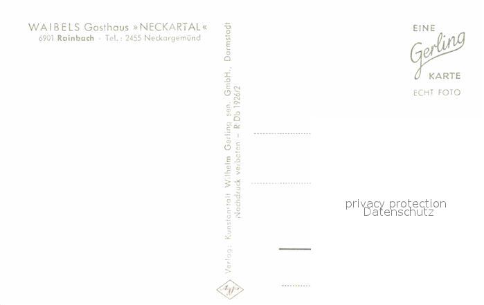 72769485 Rainbach Neckargemuend Waibels Gasthaus Neckartal postalisch nicht gelaufen Erhaltung siehe scans [LiesaD40] KatCode: 11110008226056