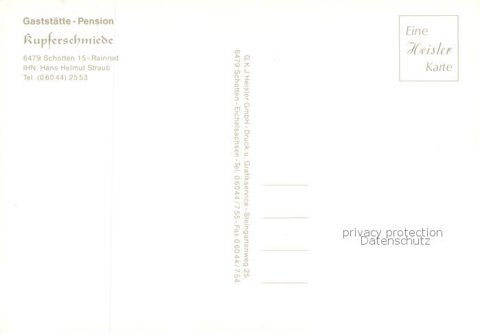 73766240 Rainrod Nidda Gasthof Zur Kupferschmiede Pension postalisch nicht gelaufen Erhaltung siehe scans [FriedD77] KatCode: 11110006535016