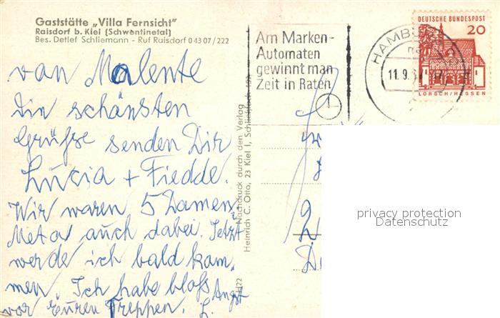 72992509 alte Postkarte Raisdorf Gaststaette Villa Fernsicht postalisch gelaufen Erhaltung siehe scans [AndreD76] KatCode: 11110001057064