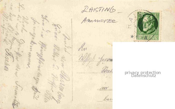 74026694 alte Postkarte Raisting Ammersee Weilheim-Schongau Bayern Wohnhaus Familie postalisch gelaufen Erhaltung siehe scans [WerneD78] KatCode: 11110009190144
